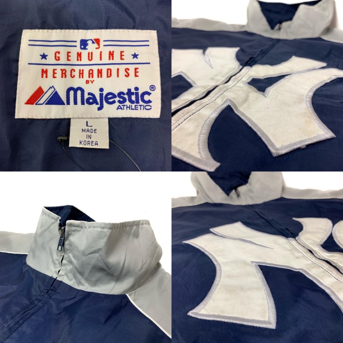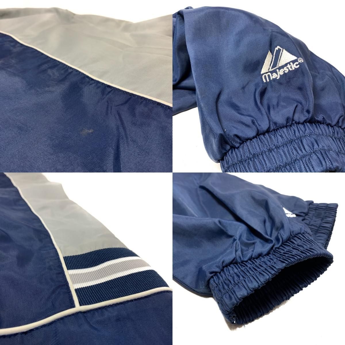 90s Majestic "NY YANKEES" Logo Nylon Jacket 紺灰 L マジェスティック MLB ニューヨークヤンキース ナイロンジャケット ロゴ 刺繍 ネイビー