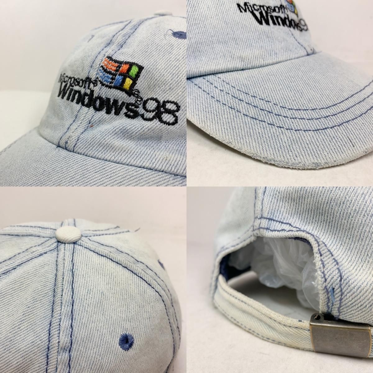 90s Microsoft "Windows 98" Denim 6 Panel Cap 青 マイクロソフト ウィンドウズ 98 6パネル キャップ デニム ロゴ 刺繍 企業物 ブルー