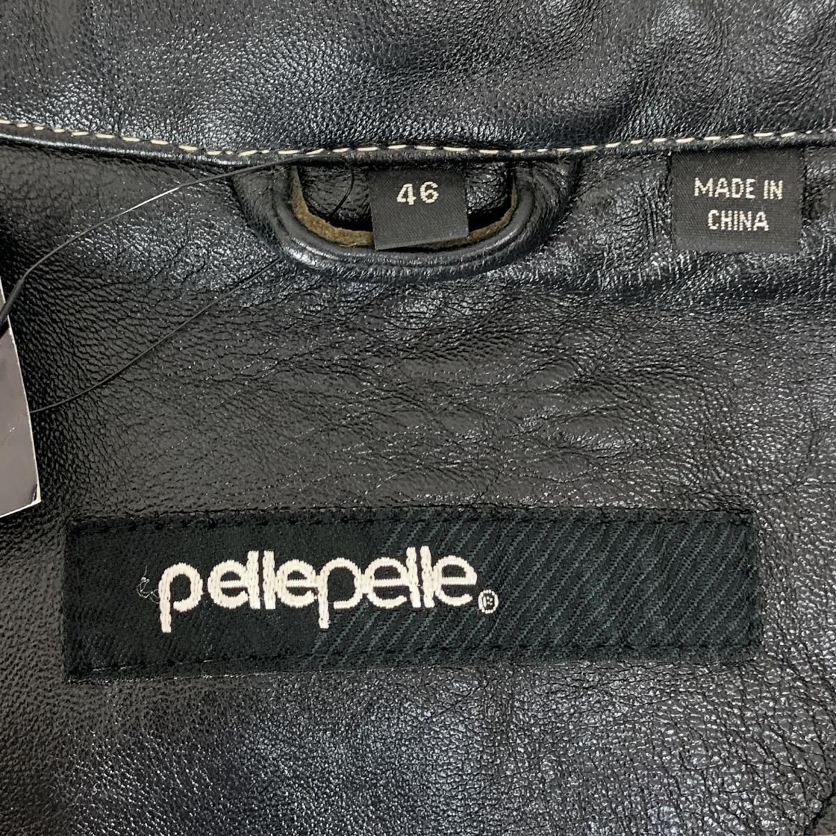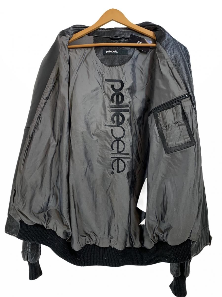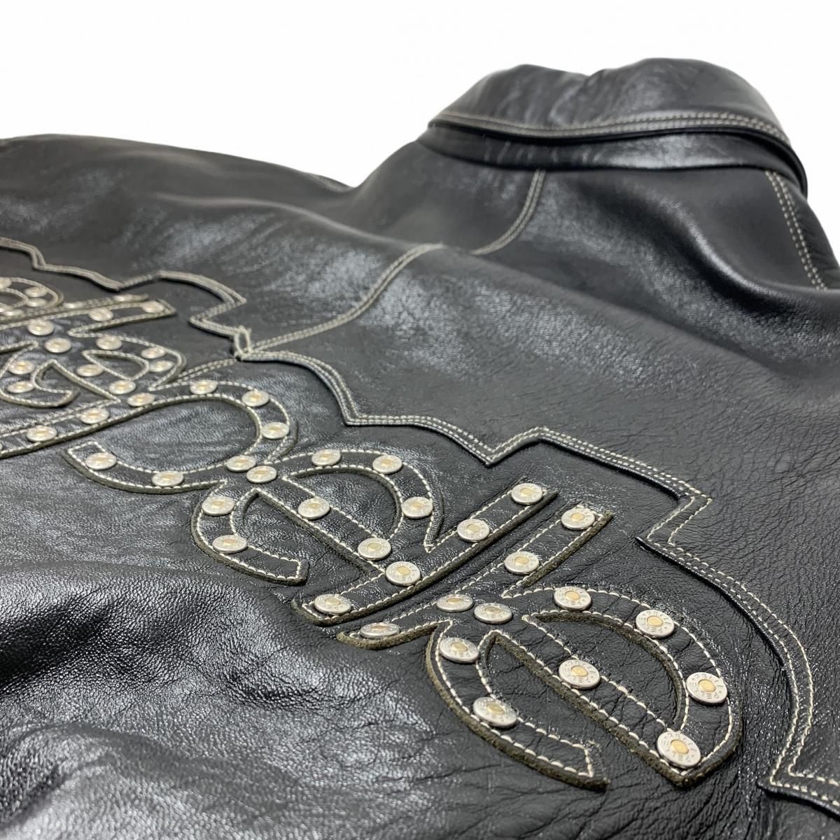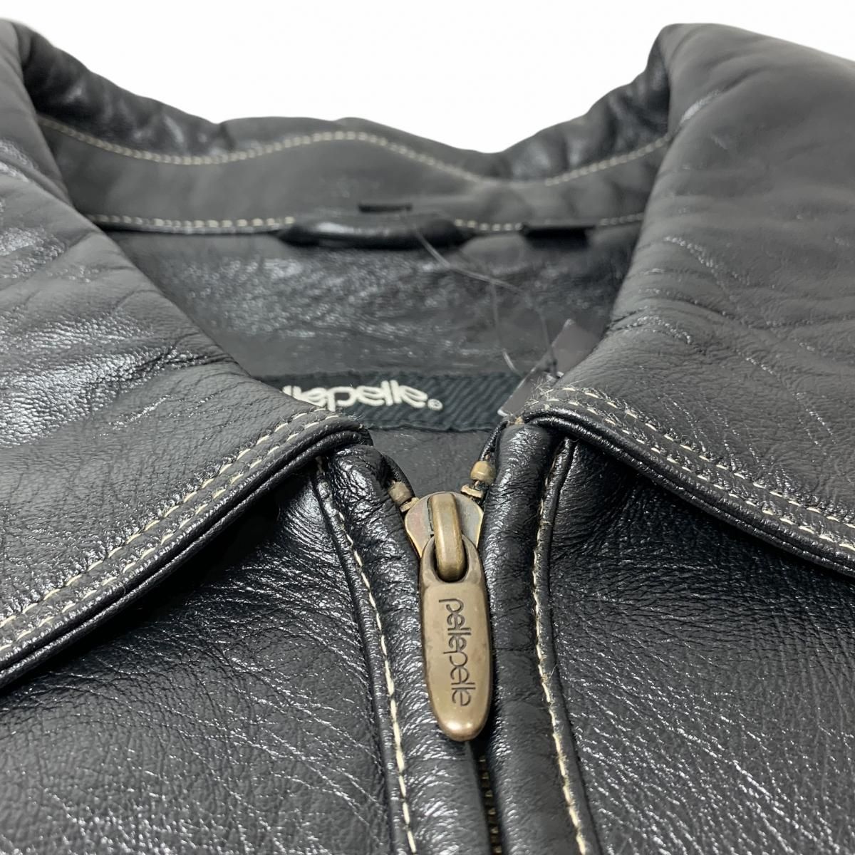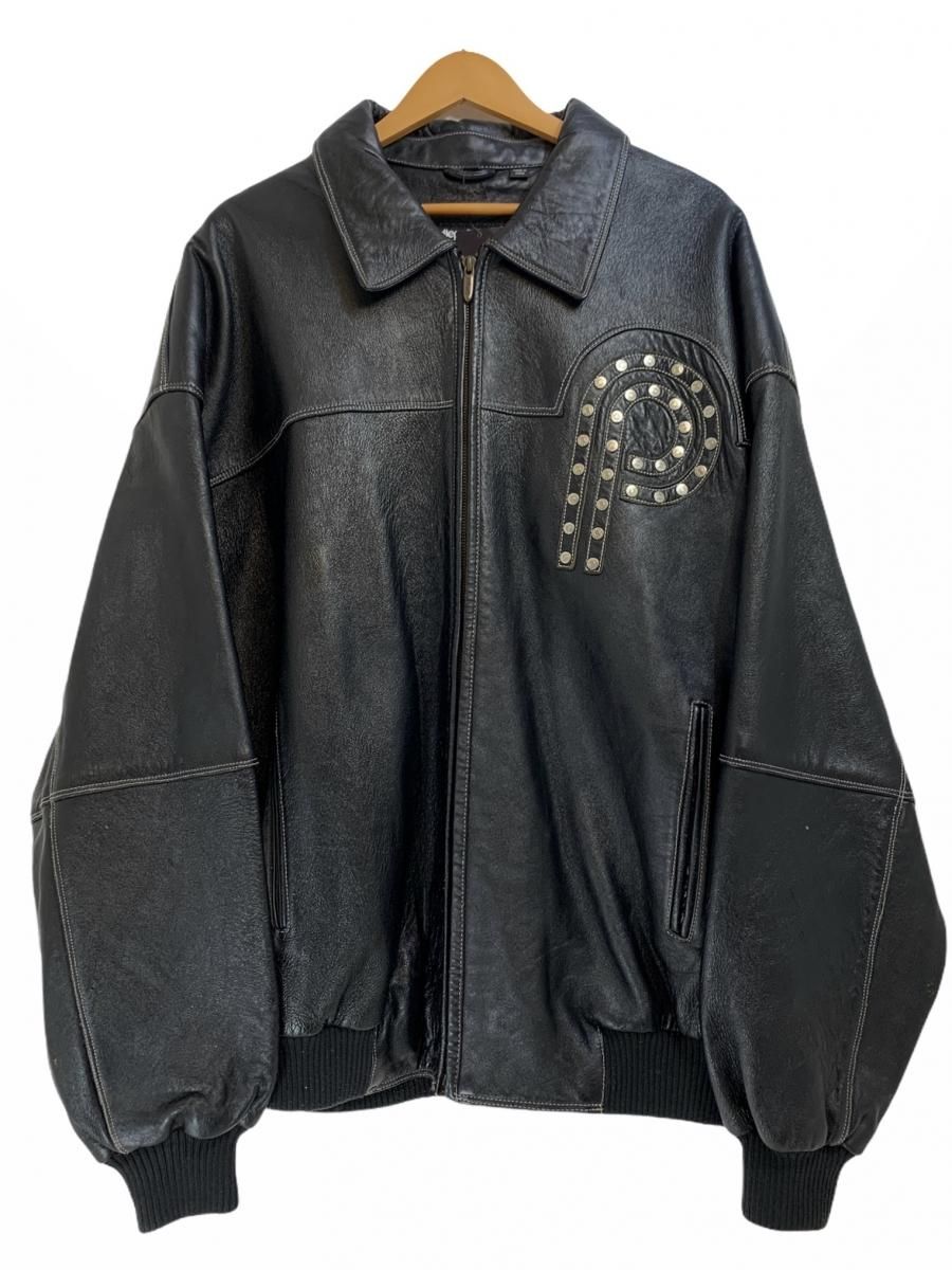 00s PELLE PELLE Studs Logo Zip Up Leather Jacket 黒 46 ペレペレ レザージャケット ブルゾン ロゴ スタッズ ブラック 古着