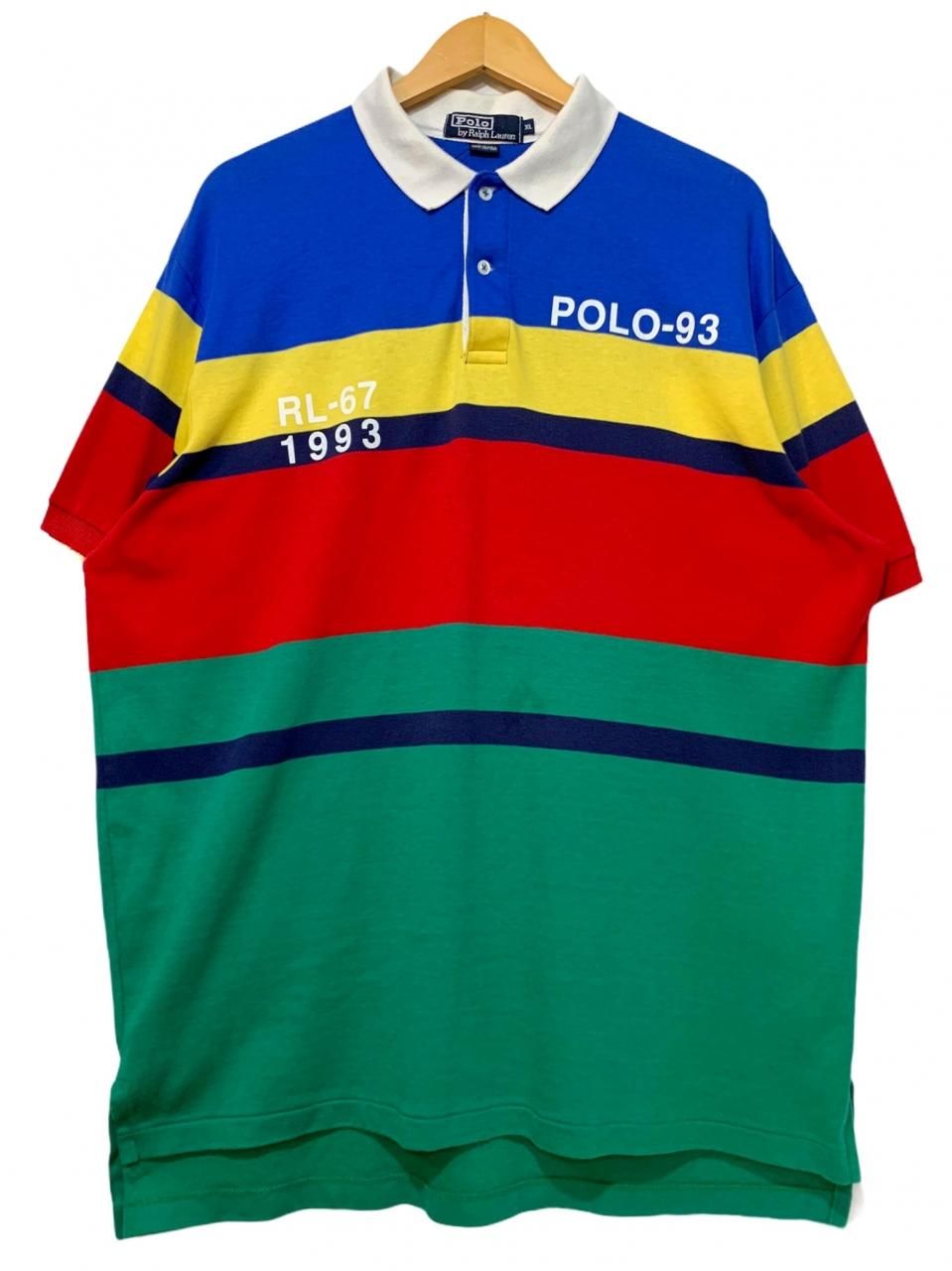 USA製 90s Polo Ralph Lauren "RL-1993" Multi Border S/S Polo Shirt マルチ XL ポロラルフローレン 半袖 ポロシャツ RL93 古着