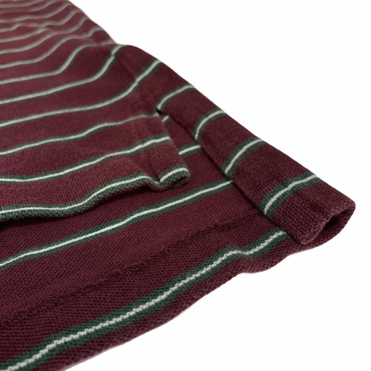 Polo Ralph Lauren Border S/S Polo Shirt エンジ L ポロラルフローレン 半袖 ポロシャツ ボーダー柄 ポニー ワンポイント ロゴ 刺繍 ワインレッド 古着