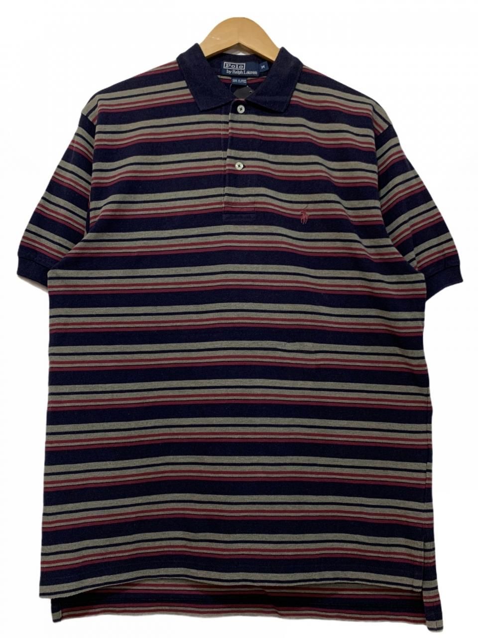 Polo Ralph Lauren Border S/S Polo Shirt 紺 M ポロラルフローレン 半袖 ポロシャツ ボーダー柄 ポニー ワンポイント ロゴ 刺繍 古着
