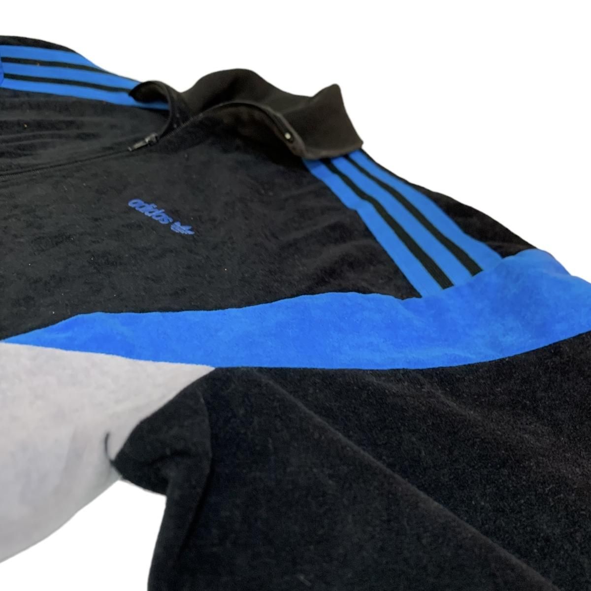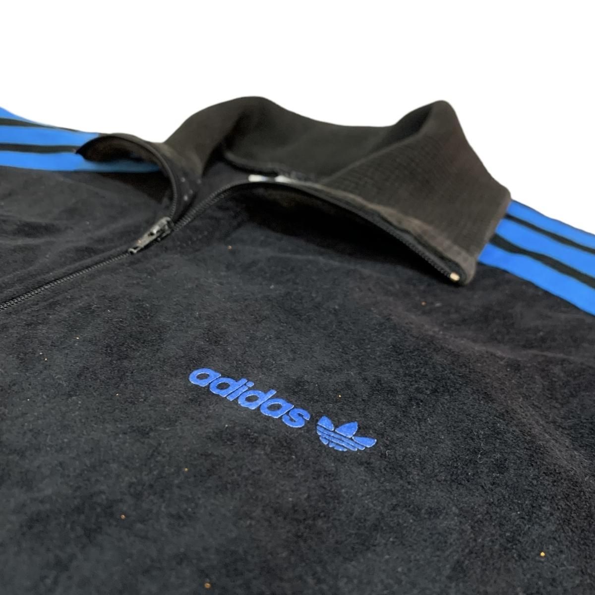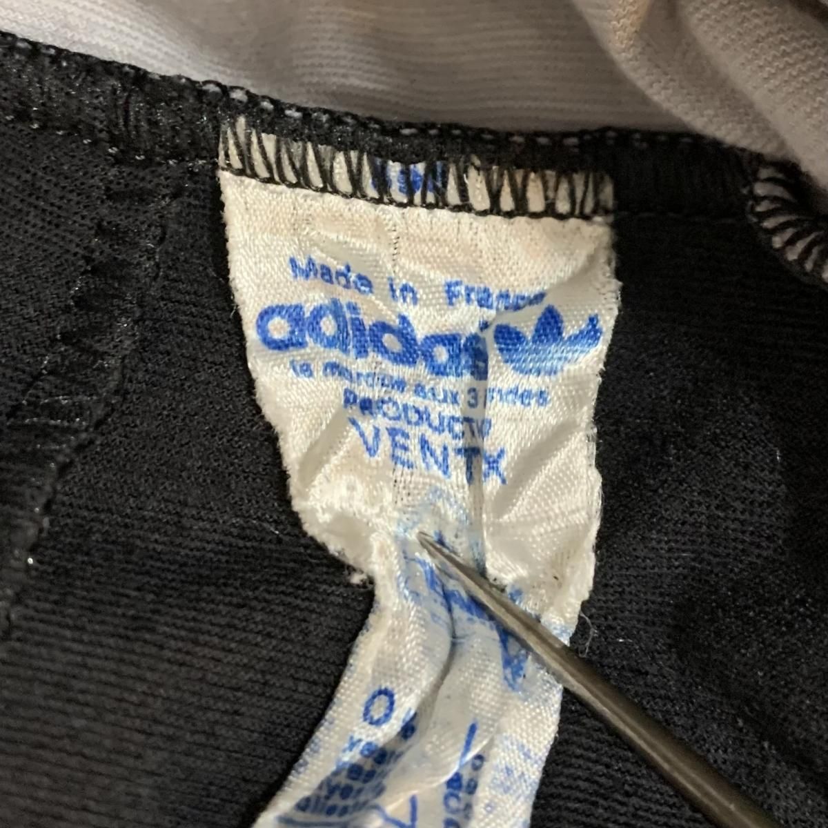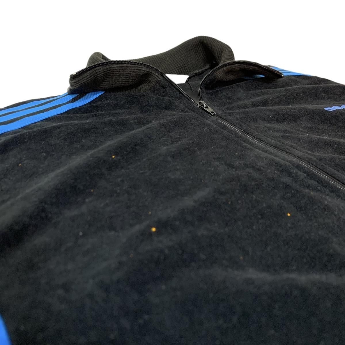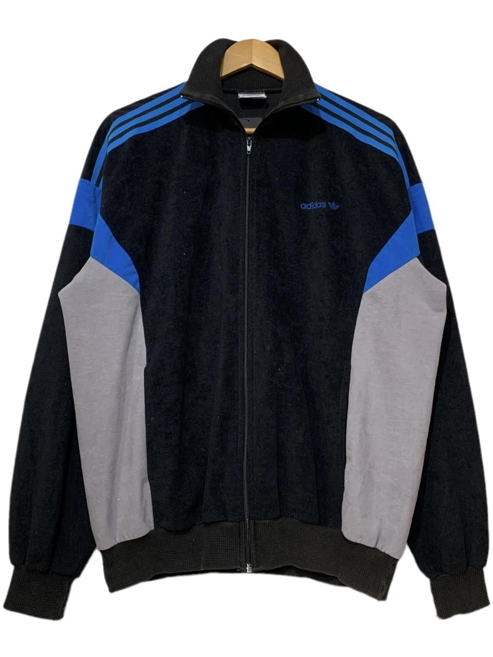 フランス製 80s adidas Velour Track Jersey 黒 L アディダス トラックジャージ ジャケット ロゴ ブラック 古着