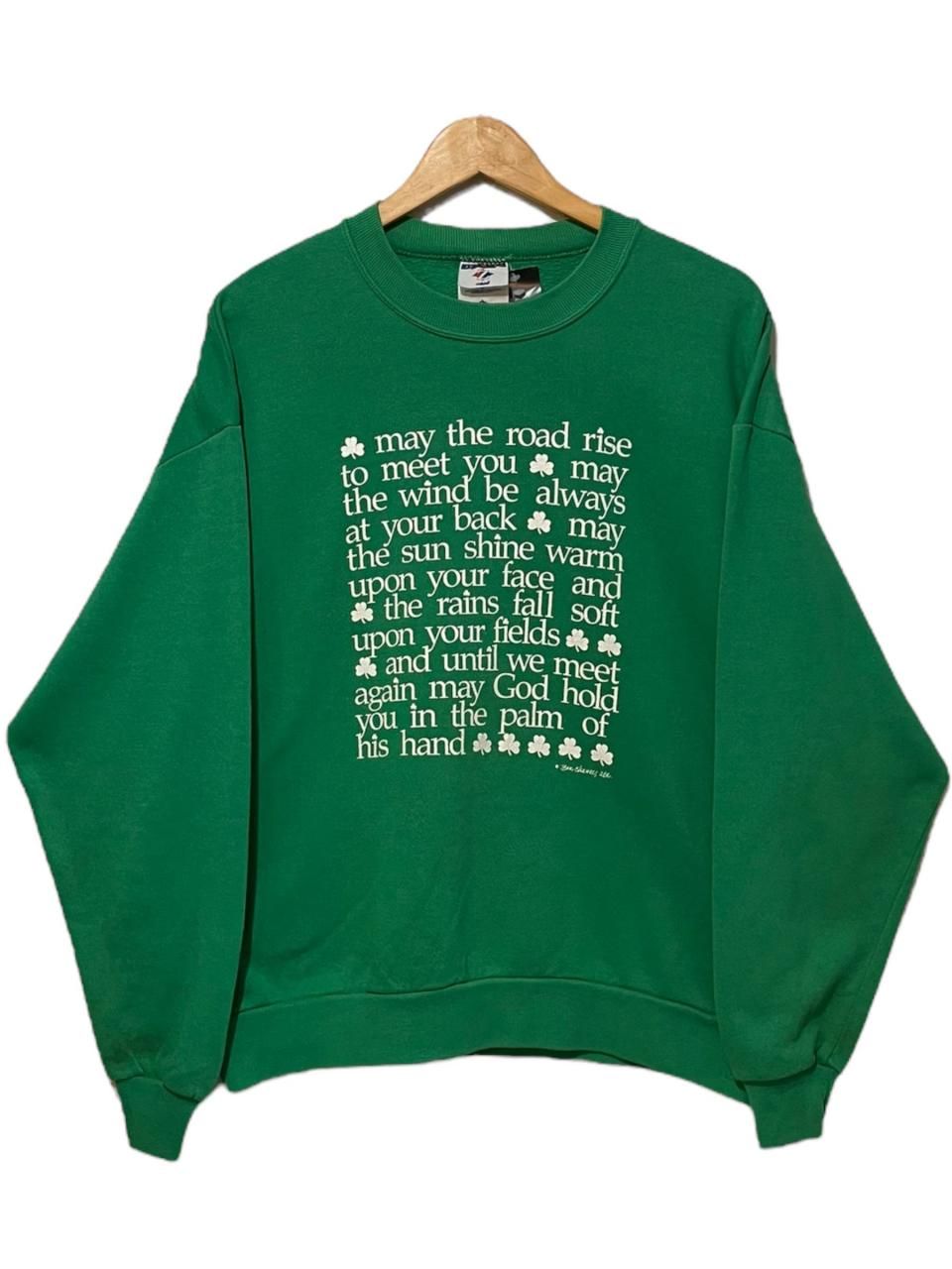 USA製 JERZEES Isish Print Sweatshirt 緑 L ジャージーズ プリント スウェット グリーン GREEN 古着