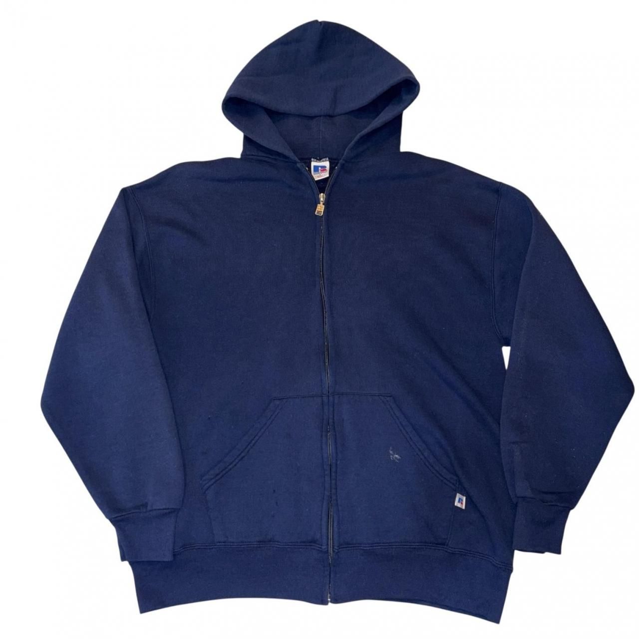 90s メキシコ製 RUSSELL ATHLETIC ZIP UP HOODIE L NAVY ラッセルアスレチック 紺 ジップパーカー オリジナルジップ 古着