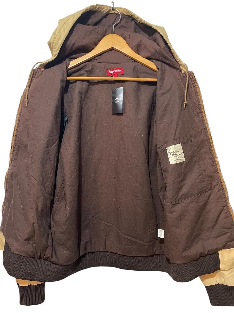 12AW SUPREME × British Millerain ジャケット ワックス 裏キルティング カーキ L シュプリーム Waxed Cotton Quilted Jacket 古着