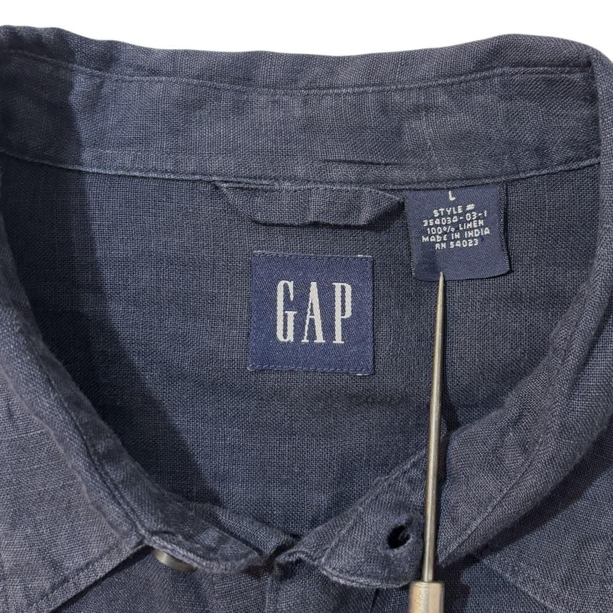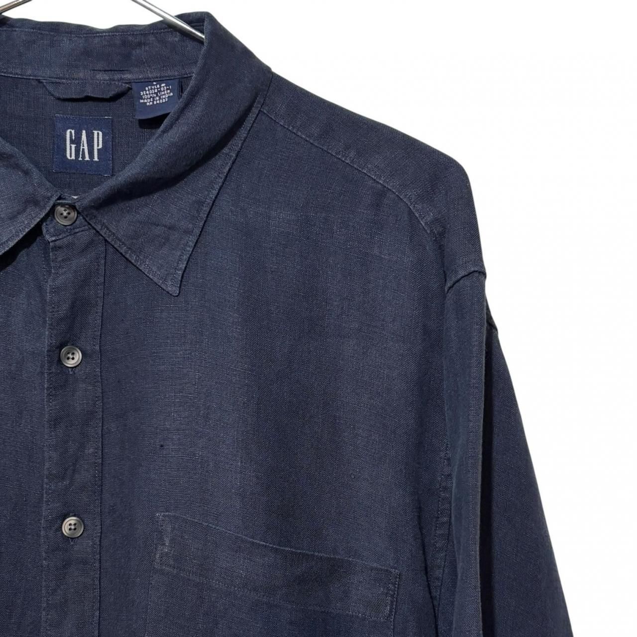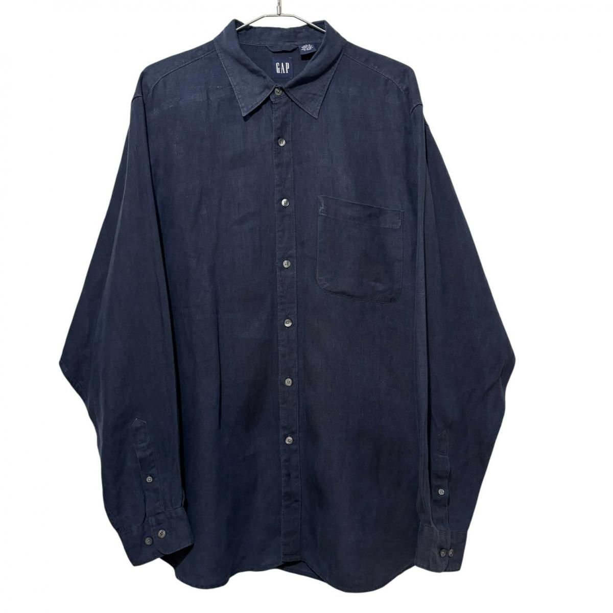00s インド製 OLD GAP L/S LINEN Shirt L ネイビー 紺 オールドギャップ リネンシャツ マチ付き 長袖 古着