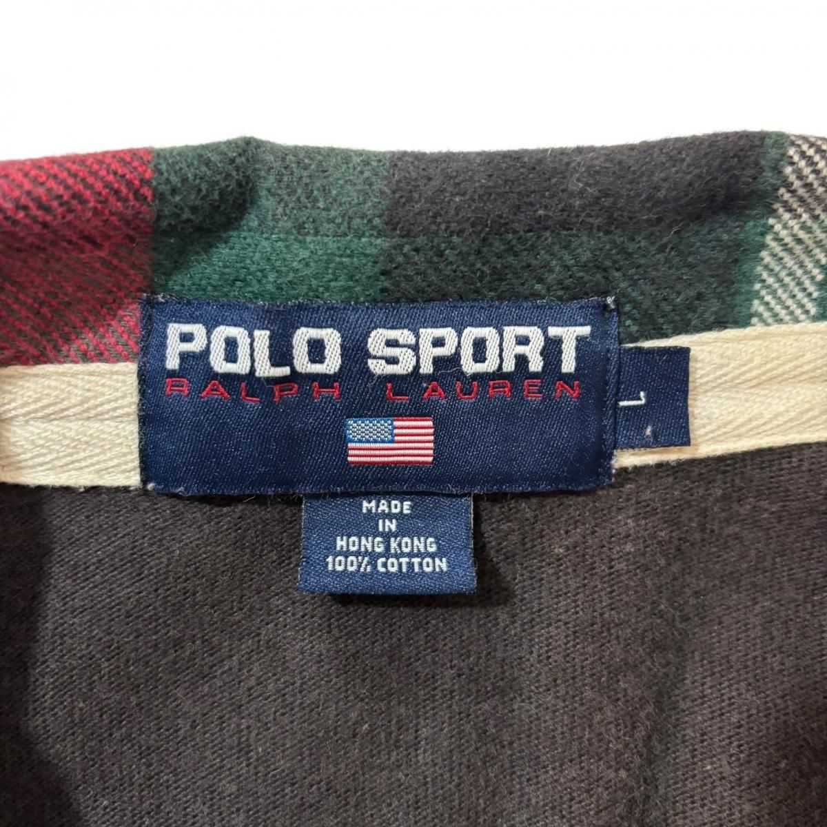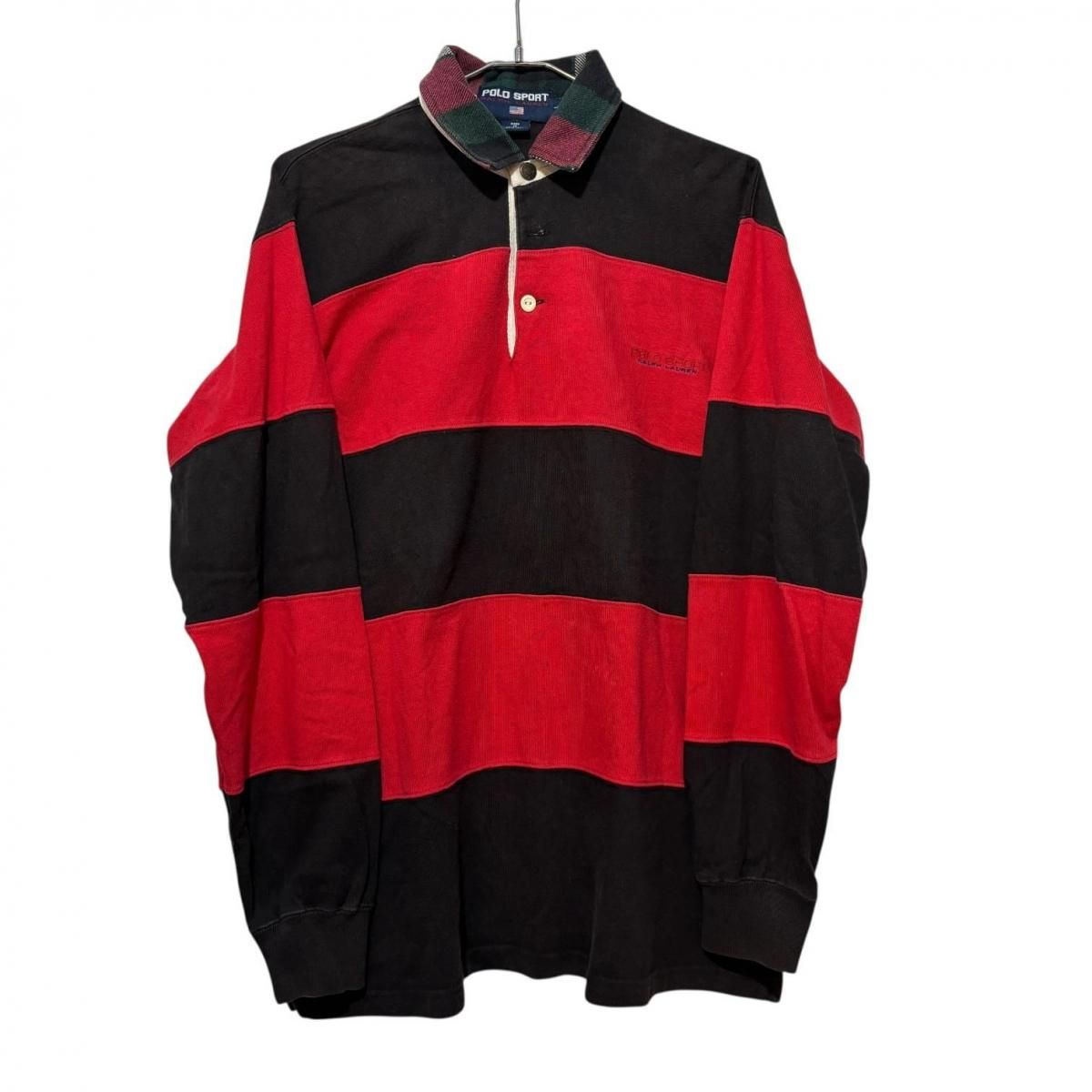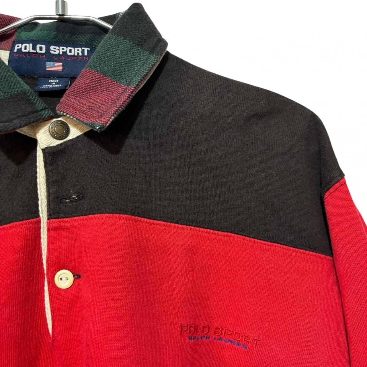 POLO SPORT RALPH LAUREN Rugby L/S Shirt L 赤 黒 ボーダー ポロスポーツ 刺繍 長袖 ラグビー 古着
